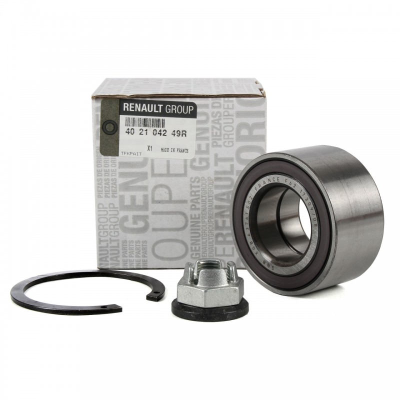 402104249R Підшипник ступиці передній Renault Captur, Zoe Оригінал від оригінального виробника Renault. Підходить для автомобілів Renault Captur (2013-2019), Renault Zoe (2013-2019) року випуску. В комплект входить: підшипник, гайка, кільце. Оригінальний номер: 402104249R.