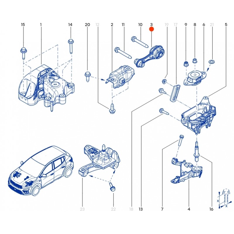 113605003R Подушка двигуна нижня (опора) 1.0 TCe Renault Оригінал від оригінального виробника Renault. Виготовлена з якісних матеріалів. Підходить на автомобілі із варіатором CVT DK0 та двигуном 1.0 TCe тип H4D: Renault Taliant (2025-...), Renault Kardian (2025-...) року випуску. Оригінальний номер: 113605003R